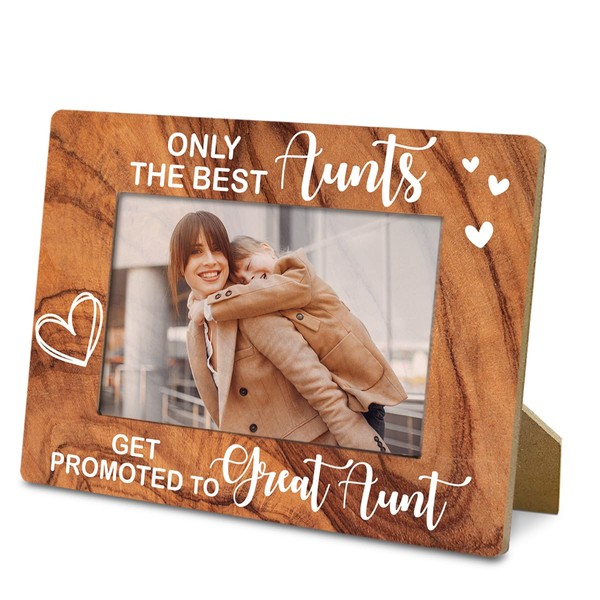 Yxadu Great Aunt Gifts, Rustic Photo Frames 4 x 6, Only the Best Aunts Get Promoted to Great Aunt, Pregnancy Announcements for Family, Farmhouse Picture Frame Gift-Rustic Nature Wood Texture