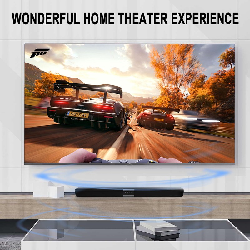- - Enhanced Sound Quality: Our sound bar for TV features advanced signal processing technology that amplifies weak audio signals, delivering crystal-clear sound quality with captivating surround sound. From subtle whispers to powerful explosions, immerse yourself in the movie like never before.