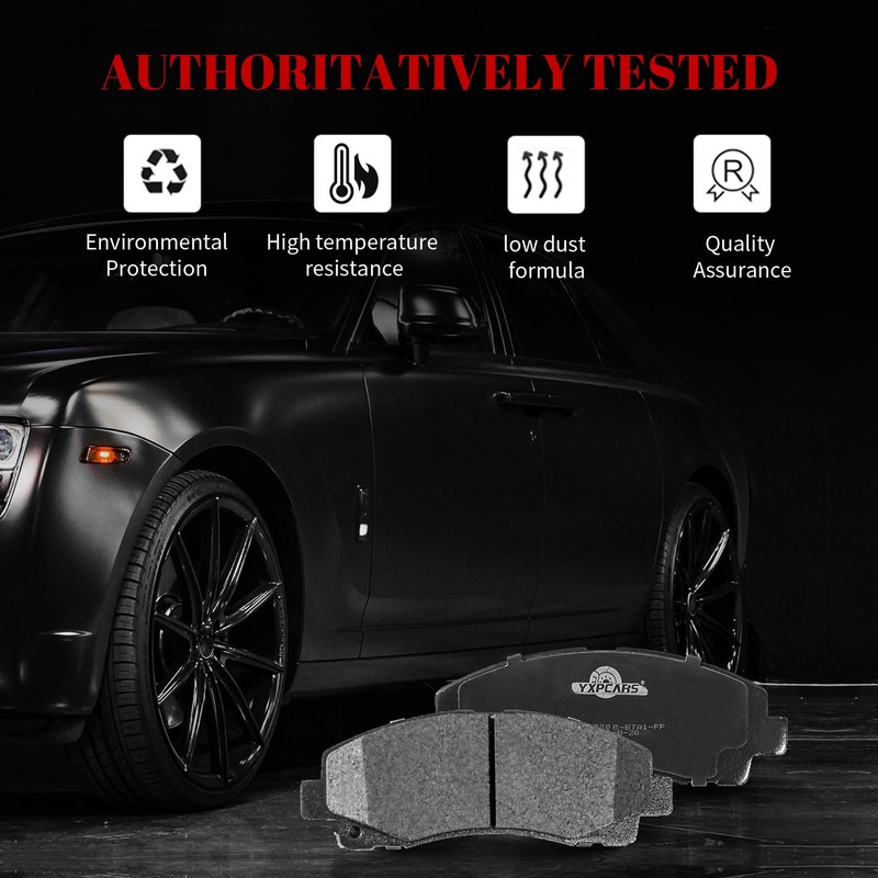 - √ Low Dust Ceramic Brake Pads: YXPCARS disc brake pads are manufactured with ceramic as the main material. The unique scientific material formula makes the dust generated by friction in your car almost zero during braking. Avoid affecting the braking effect of the car.