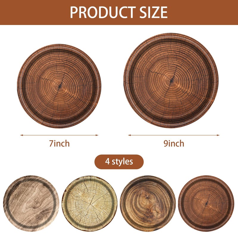 - Wide Application: These wood grain plates work effortlessly with other decorations such as tablecloths, banner and backdrop, which suitable for rustic parties, nature-themed celebrations, woodland birthday parties, outdoor events, weddings, farmhouse-style gatherings and so on.