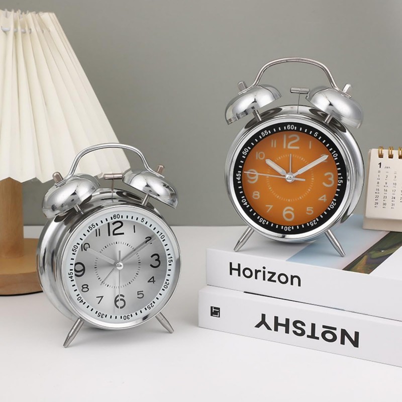 YYDS 大音量 振動 アナログ アラーム うるさい 爆音 可愛い ベル音 絶対起きれる目覚まし時計 爆音めざまし時計 オシャレ 置き時計 おしゃれ 目覚ましどけい 起きられない人用 絶対に起きる目覚まし 北欧風 静音 連続秒針 電池別売 アラームクロック 深い眠りの方向け 子供 学生 4インチ オレンジ+シルバー