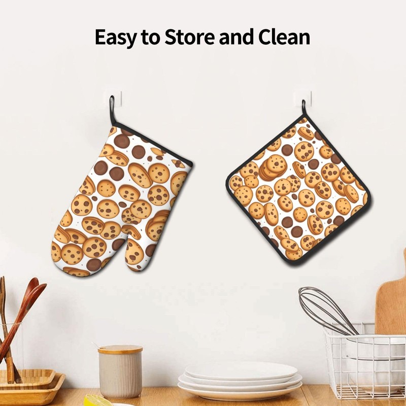 YYHWHJDE Cookies Food Chocolate Chip Biscuits Printed Quality Oven Mitts and Pot Holders Sets of 2 Kitchen Baking Used to open pot lids in the kitchen