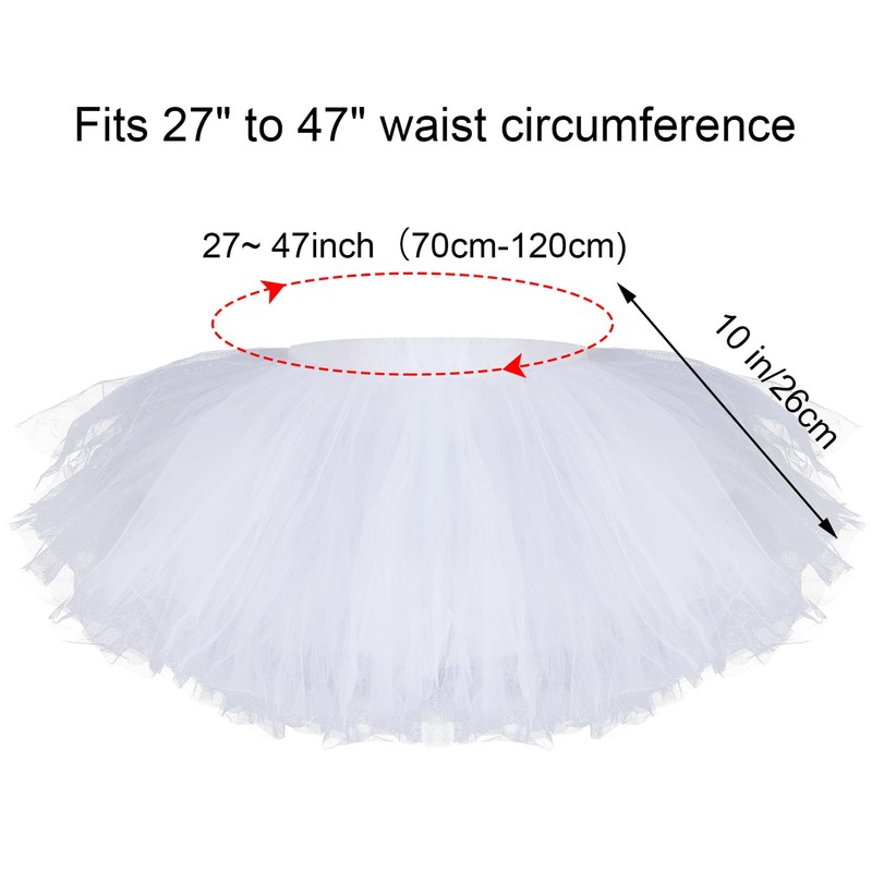 - Versatile Matching: With a length of about 10 inches, this mini tulle skirt pairs perfectly with numerous costumes, such as ballerina, swan, loofah, 80s, and fairy outfits; It allows for creative combinations, like wearing with shorts, leggings, or over other skirts for diverse looks