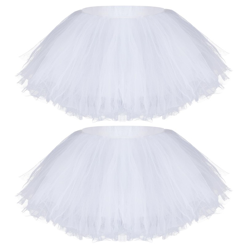 Yymobt 2 Pack White Tutu Tulle Skirt for Women 5 Layered Stretchy Puffy Fluffy Adult Dance Skirt for 80s Ballerina Party Costume