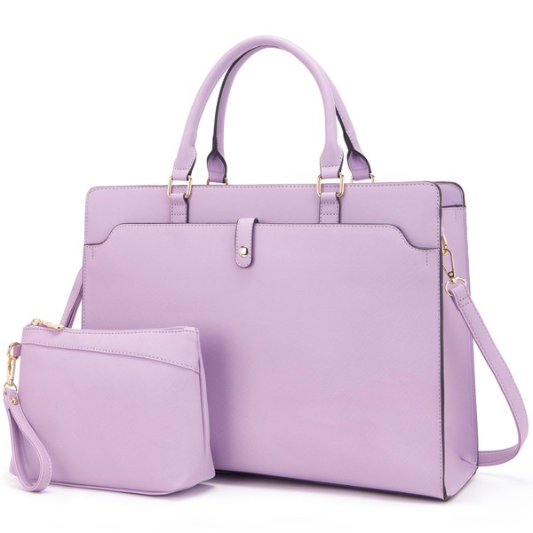 YZAOLL 15.6 Inch Laptop Bag for Women,Lightweight Vegan Leather Work Tote with Clutch Purse,Water-resistant Business Briefcase - Large Capacity Office Bag for Travel,College Essentials(Gift),Purple