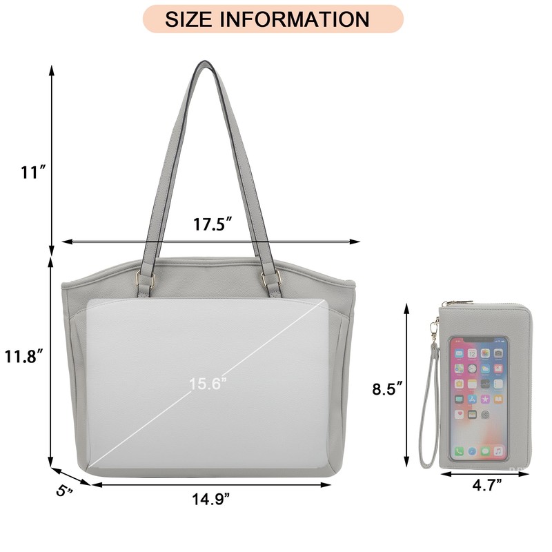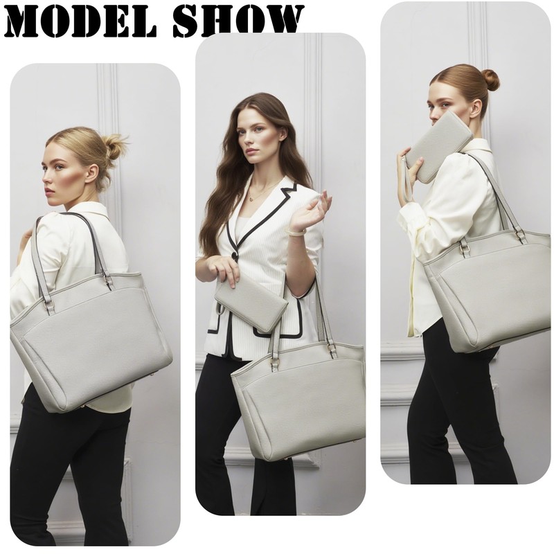 - 5.Matching Anti-Theft Wallet Included:Secure zip-around RFID-blocking wallet with wrist strap complements the bag’s style. Holds cards, cash, and travel essentials. This leather tote laptop bag with wallet set can be your laptop computer bag,business work bag, It's perfect for work, business trip, meeting, shopping or daily use. Awesome gift choice for girl and women on Birthday, Valentine's Day, Mother's Day, Christmas, Graduation.