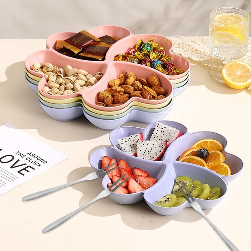 - CANDY TRAYS MIT VIER KOMPARTEMENTS: Süßigkeitenschalen mit Fächern verhindern, dass sich die Aromen vermischen. Diese Bonbonschalen bieten eine Auswahl von 4 verschiedenen Obst- und Snackfächern, um die Lebensmittel getrennt, hygienisch und originell zu halten.