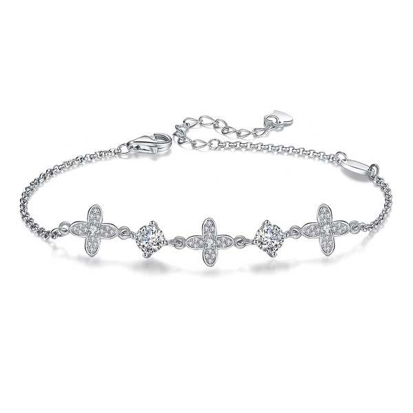 Z.Angie Women's Four Leaf Clover Bracelet, Sterling Silver, Good Luck, Women's Accessory, Mother's Day, Valentine's Day, Anniversary, Birthday, Christmas Gift, Gift Packaging, Stone Silver Sterling Silver Metal, Cubic Zirconia