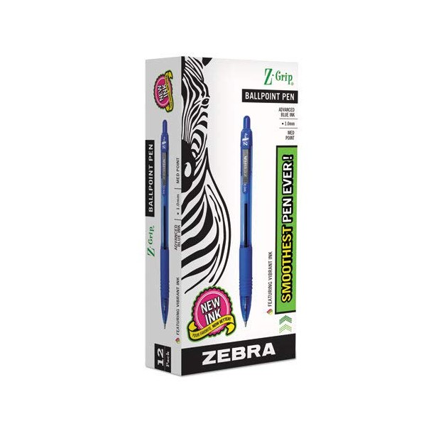 Z-Grip Retractable Ballpoint Pen, Blue Ink, Medium, Dozen