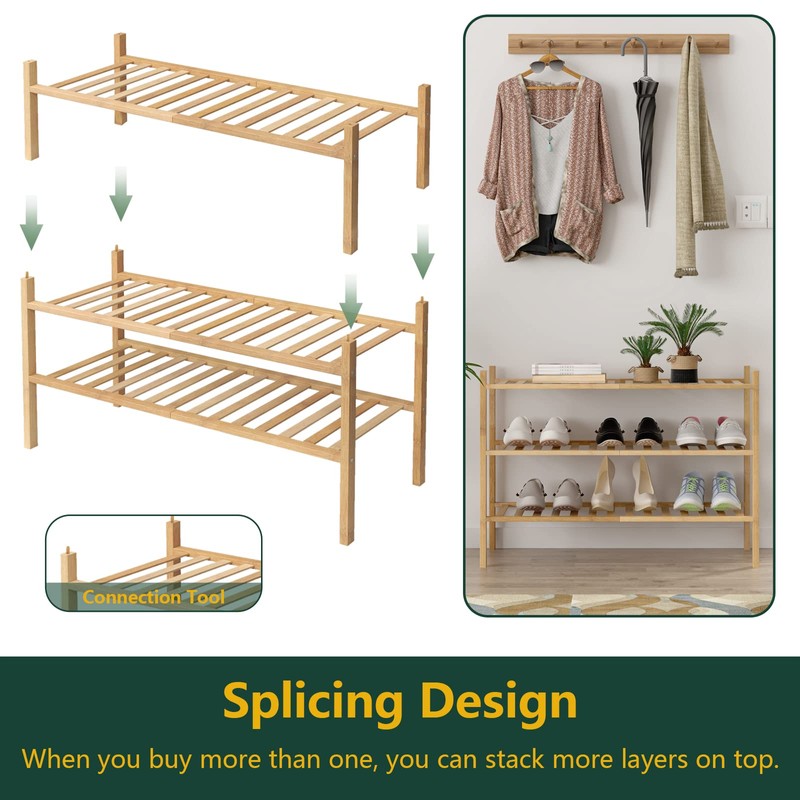 Z&L HOUSE 3-Tier Shoe Rack for Closet, Stackable Shoes Rack Organizer Free Standing Shoe Shelf for Entryway and Closet Hallway, Multifunctional Bamboo Rack in Different Combinations (3-Tier)