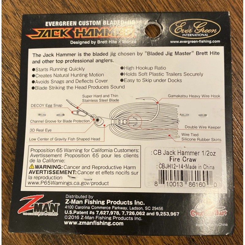 The Z-Man/Evergreen Jack Hammer Chatterbait is a top-of-the-line jig designed for catching shad. With its green pumpkin color and weighing in at 1/2oz, this bait is sure to attract even the most finicky of fish. The brand, Z-Man, is known for their high-quality fishing lures and this one is no exception.