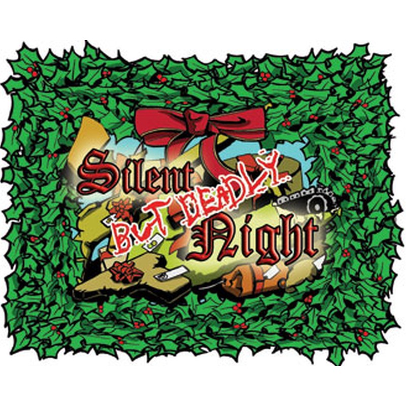 We bring you holiday joy as we salute the films of Christmas past. Players are making a B-Movie by playing Characters, Props, and Locations in their movie and sending Creatures to attack the other players' movies in order to kill off their Characters. SFX cards can modify attacks and do other wacky stuff. When Roll the Credits is played, the player with the most points wins! SPECIAL: Silent but Deadly Night comes in a colorful tin and contains a Skippy the Wonder Christmas Puppy plush ornament! Compatible with all other B-Movie games from Z-Man Games. The Silent But Deadly Night B-Movie Card Game contains 120 card that can stand alone as its own game or be mixed in with any other B-movie card game. The Silent But Deadly Night B-Movie Card Gameis for 22-6 players, ages 12+ and takes 20-40 minutes to play.