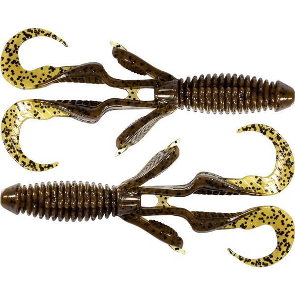 This innovative bait is designed to offer anglers a substantial and versatile option, equipped with a range of applications. The Gremilin boasts a robust and bulky creature bait profile, making it a standout in various fishing scenarios. Its ingenuity lies in the incorporation of twin curly tails and appendages, which synergistically generate a subtle yet captivating underwater action and vibration.