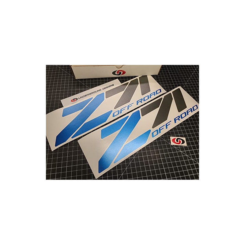 Z71 Off Road Decals (2-Pack) Chevy Fender 15" Custom Tailgate Stickers Silverado (Bright Blue Metallic & Charcoal)
