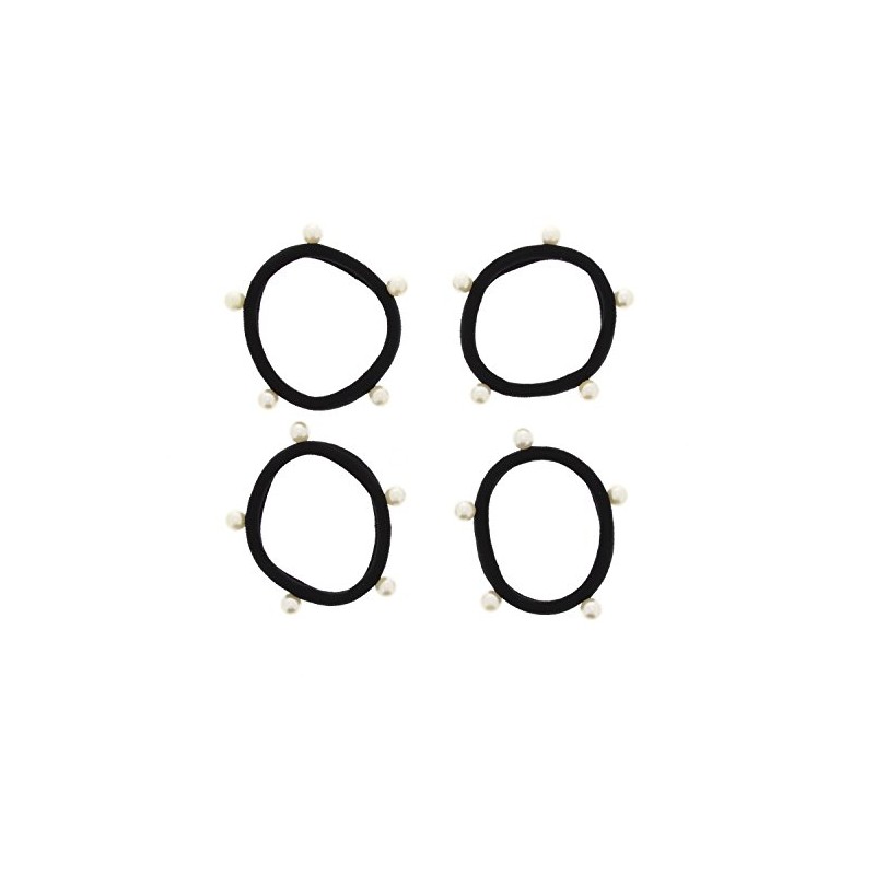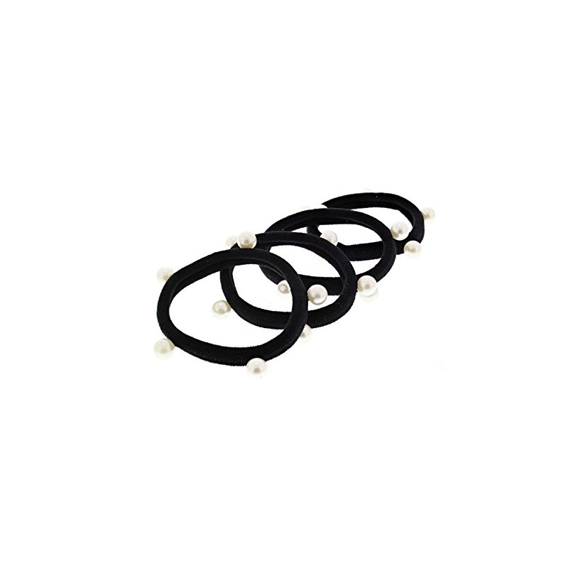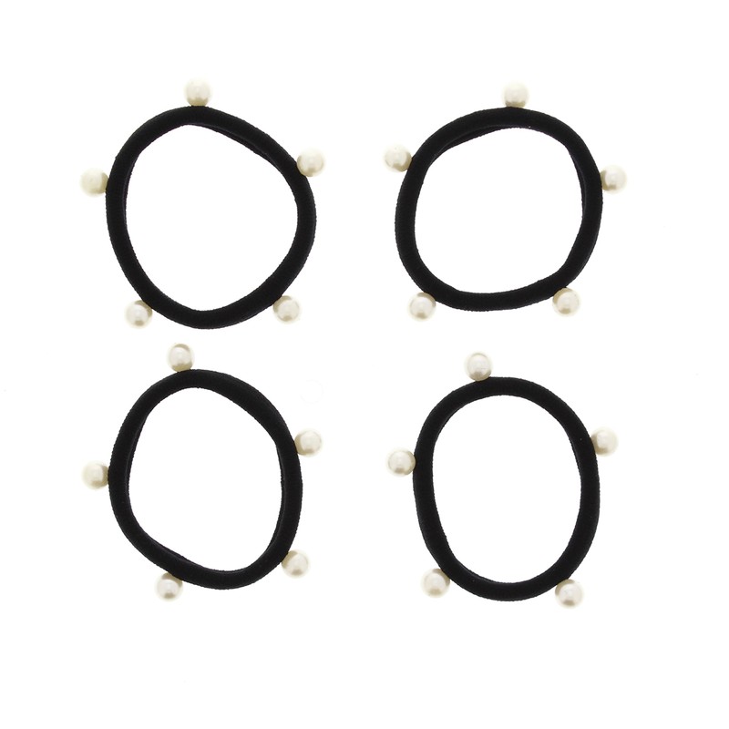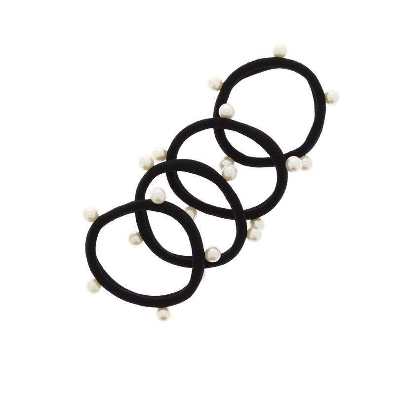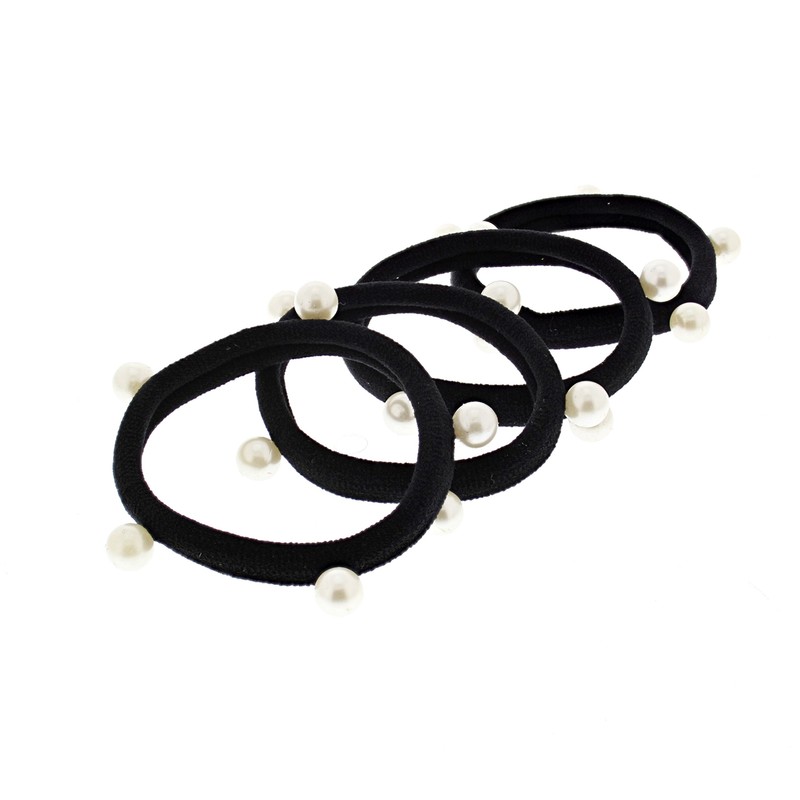 Zac's Alter Ego Pack of 4 Thick Black Soft Hair Ponios with Pearl Beads
