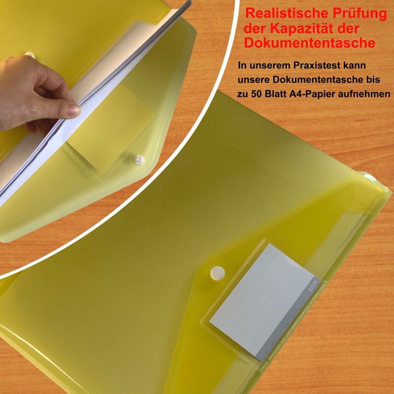 - Press stud design: the strong adhesive press stud closure, stronger and more durable than Velcro fasteners on the market, which does not easily deform or fall off, ensures safe storage of documents and the size of the bags, so that even slightly thicker documents fit in the pockets.