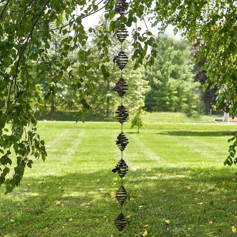 - These rain chains make for a beautiful addition to your home. Chose from a range of different designs and colors. They are each handcrafted out of metal and painted in several coats of paint to create a wonderful aged finish.