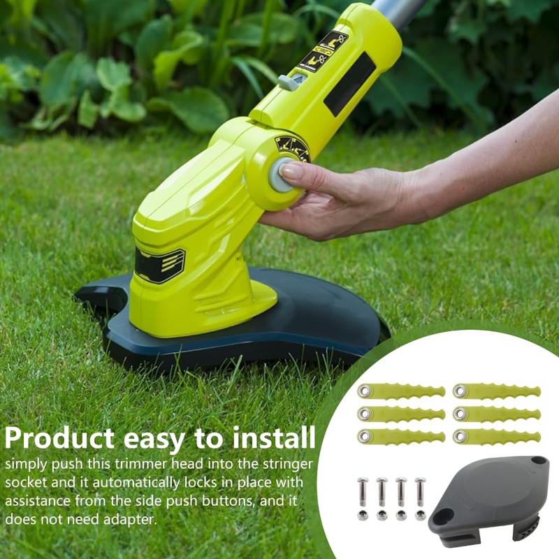 • ❥ Easy Installation: simply push this trimmer head into the stringer socket and it automatically locks in place with assistance from the side push buttons, and it does not need adapter. Avoid using this accessory for edging, working alongside brick, chain, or wooden fencing,