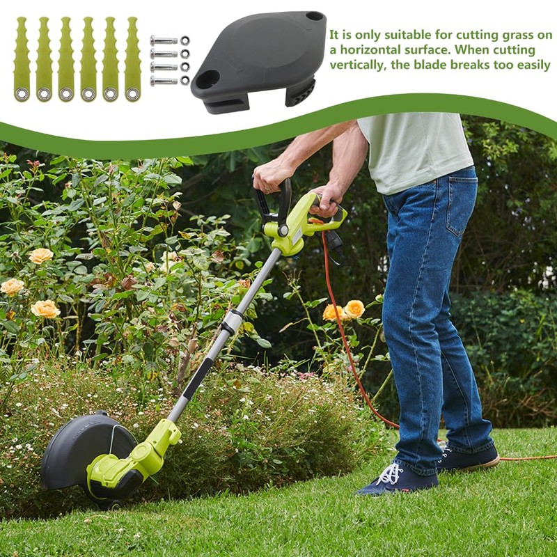 • ❥ The Weed Eater Bladed Head with 6 Replacement Blades. It is suitable only for cutting weeds in the horizontal plane. When cutting vertically, the blade breaks too easily. It is recommended to use a string trimmer reel for vertical cutting.