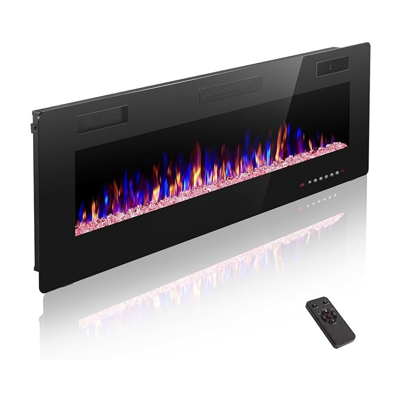 ZAFRO 50" Electric Fireplace with Remote Ultra-Thin & Quiet Wall-Mounted Recessed Heater, Adjustable 12-Color Flame, Brightness & Speed