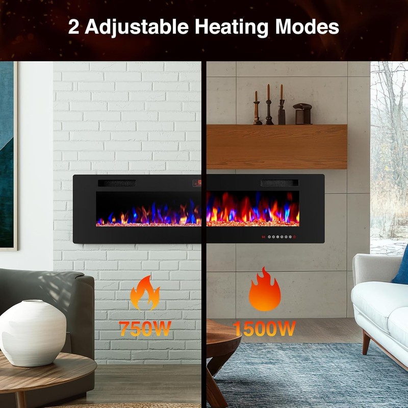 - 【Two Heat Settings & Energy Savings】:The Wall Mounted Fireplace features two heat settings (750W and 1500W) that can heat any room up to 400 feet quickly. Meanwhile, our electric fireplace can reduce your electric bill by using less energy than gas or oil.