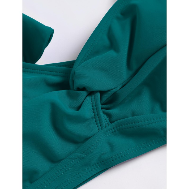 ZAFUL Women High Waisted Bikini Set Solid Color Splice Ruffled Twist 2 Piece Swimwear Summer Beach Bathing Suit 0-Green,L