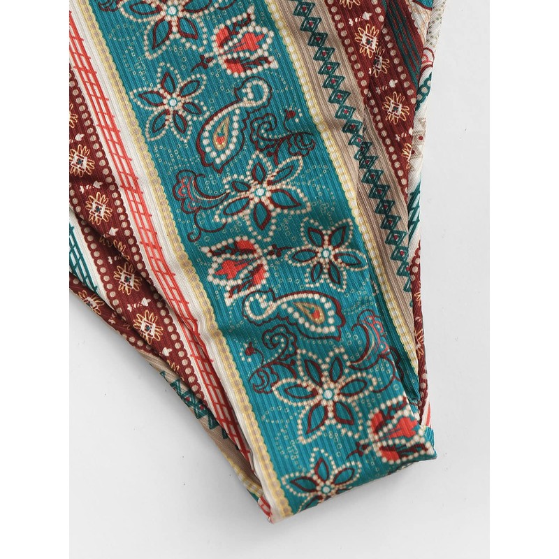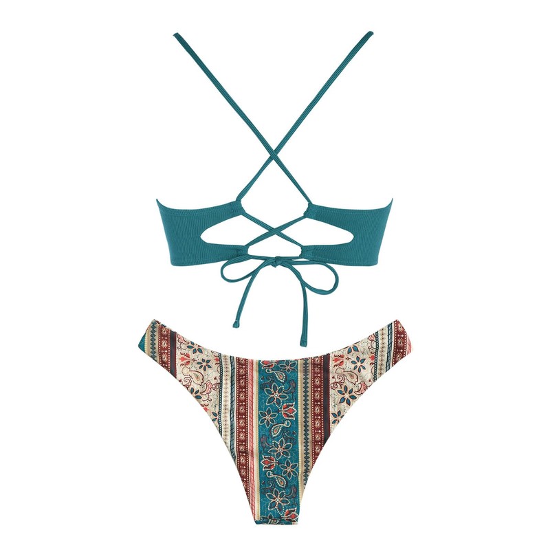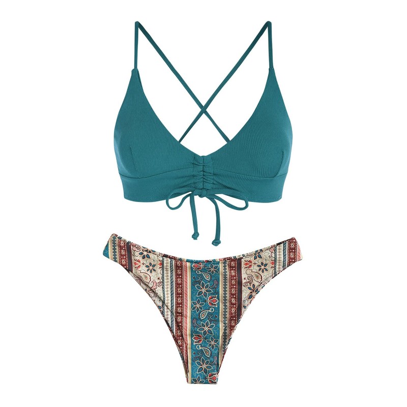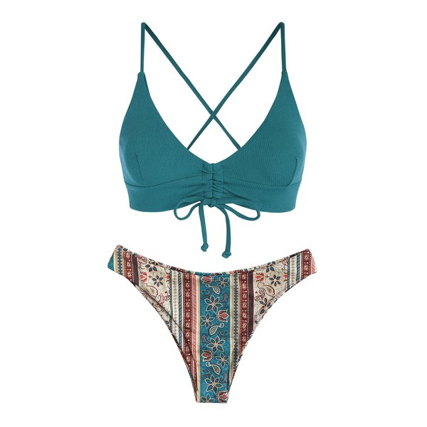 ZAFUL Women's Two Piece Bikini Set with Adjustable Bra Push-Up Back Triangle Bustle Swimming Trunks with Floral Pattern, 5-blue