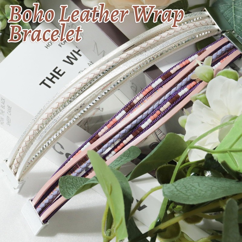 - 【ATTRACTIVE】Our leather wrap bracelets for women featured it’s premium leather and decorate with faux rhinestone. These bracelet for women is multi-layer and really attractive when you wearing it. Comes with 2 pack of layered bracelets can meet all your daily outfit needs and make you more charming and attractive!
