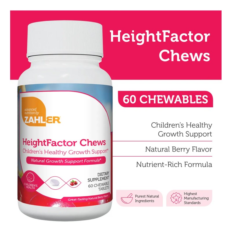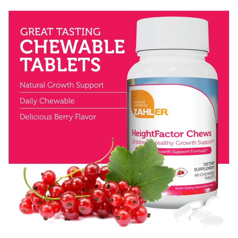 - MASTICABLES AMIGABLES PARA NIÑOS - Con sabor delicioso a frutos rojos naturales, HeightFactor es fácil de tomar para niños de 4 años o más. Dos tabletas al día hacen la suplementación divertida y simple.