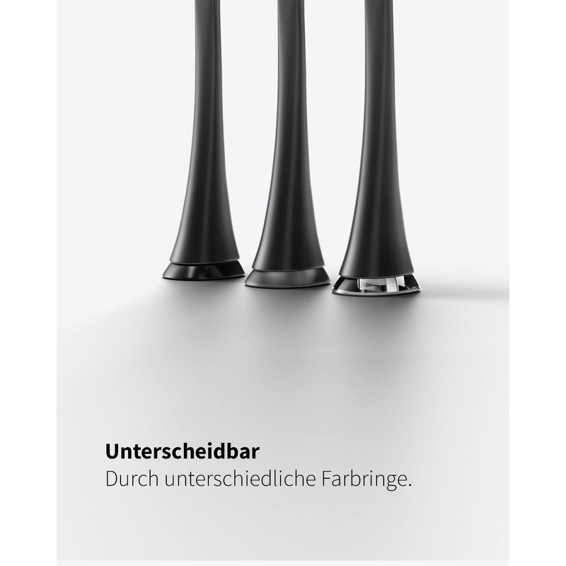 - VERSCHIEDENE RINGFARBEN: Dank unterschiedlich farbiger Ringe an den Wechselköpfen kommt es zu keinen Verwechslungen mehr und jeder nutzt seinen eigenen Bürstenkopf.