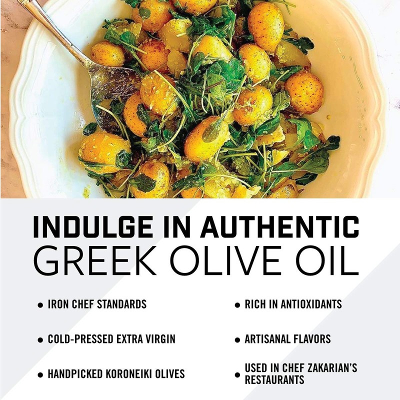 - MADE FROM HANDPICKED GREEK OLIVES: Zakarian Extra Virgin Olive Oils are made exclusively from Koroneiki olives harvested from a fifth-generation family-owned cultivar in southern Greece, grown organic without any chemicals, pesticides, or artificial fertilizers.