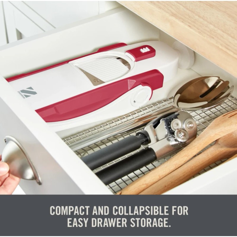 - PERFECT GIFT: The perfect wedding or new home gift, the mandoline’s small size takes up little counter or cupboard space, and is a great addition to anyone’s kitchen.