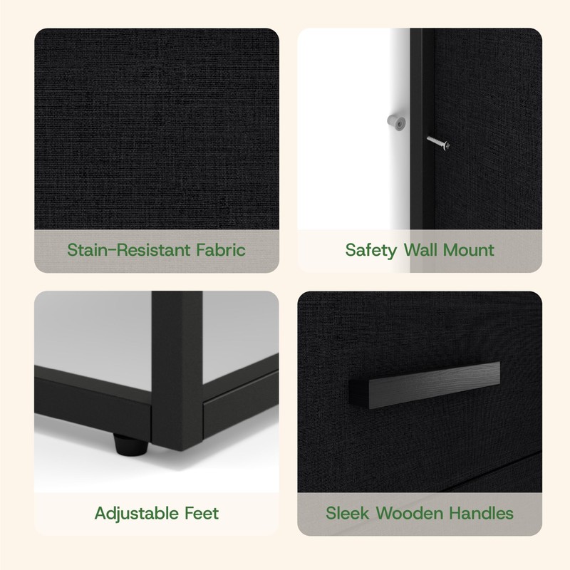 - πππ π π ππ ππππ & ππππ - Each drawer is weight-tested to ensure durability over the years. Made from durable, breathable, stain-resistant & odorless fabric, it promotes a healthier environment for both you & your pets. The safety wall mount ensures that the dresser remains in place even when disturbed by kids or pets.
