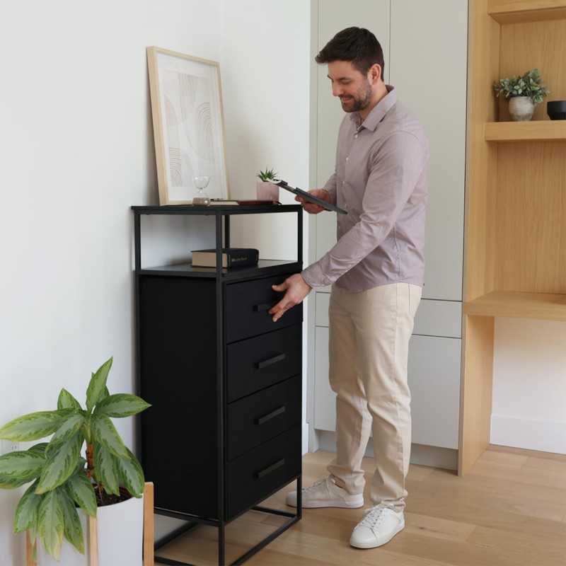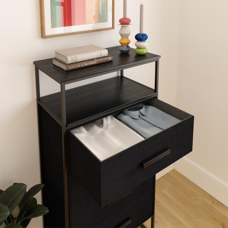 Zana Premium Fabric Dresser - Strong Metal Frame, 4 Spacious Sag-Proof Drawers & Sturdy Wooden Top Shelf - Premium, Sleek & Durable Storage Solution for Your Home (Black)