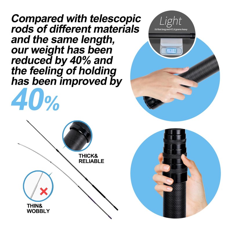 Zanvxt 1.9 to 9.8ft Carbon Fiber Extension Pole. Multi-Purpose Pole with Universal Twist-on Metal Tip 、Paint Roller Extension Pole、Best Telescoping Pole for Cobweb Duster, Dusting and Window Cleaning