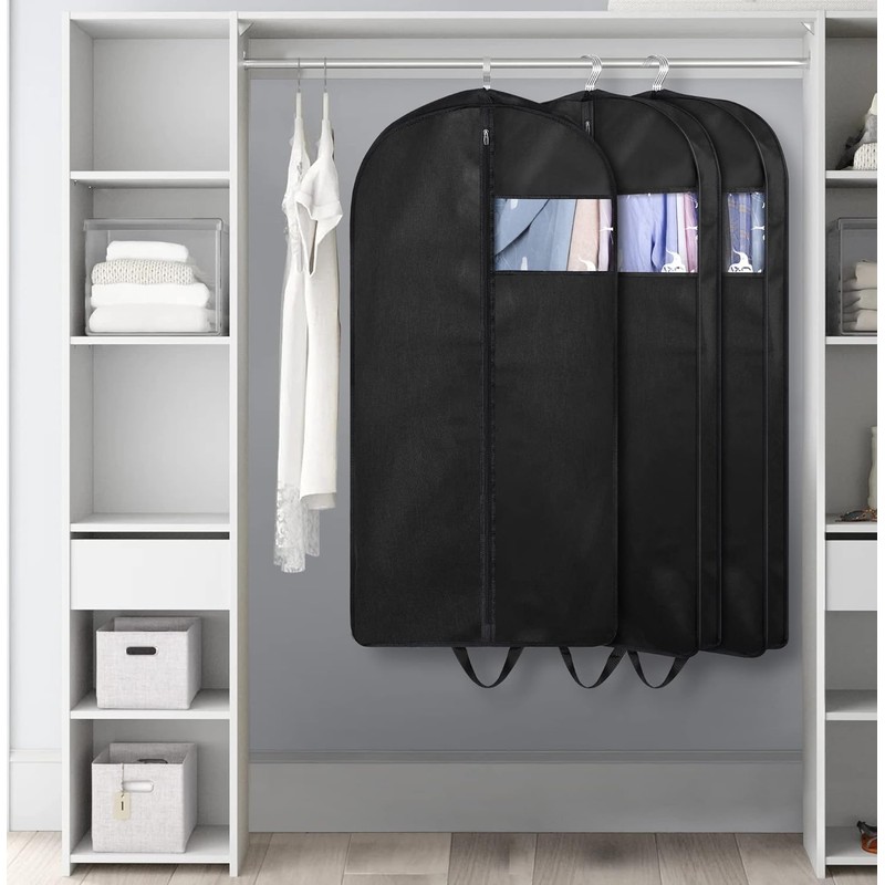 - Roomy Capacity: Set of 3 garment bags for storage, each hanging clothes bag has 4" gussets to store about 4pcs suits or 8pcs shirts, 3 packs can total hold up to 12pcs jackets or 9pcs winter coat;