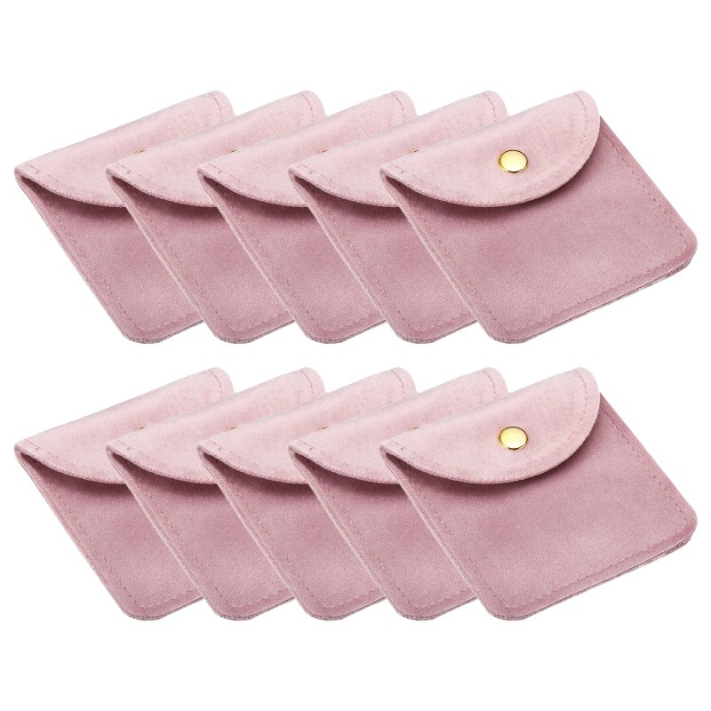 Zaplyte 10 Pack 8x8cm Jewelry Pouches with Snap Button Soft Storage Pink