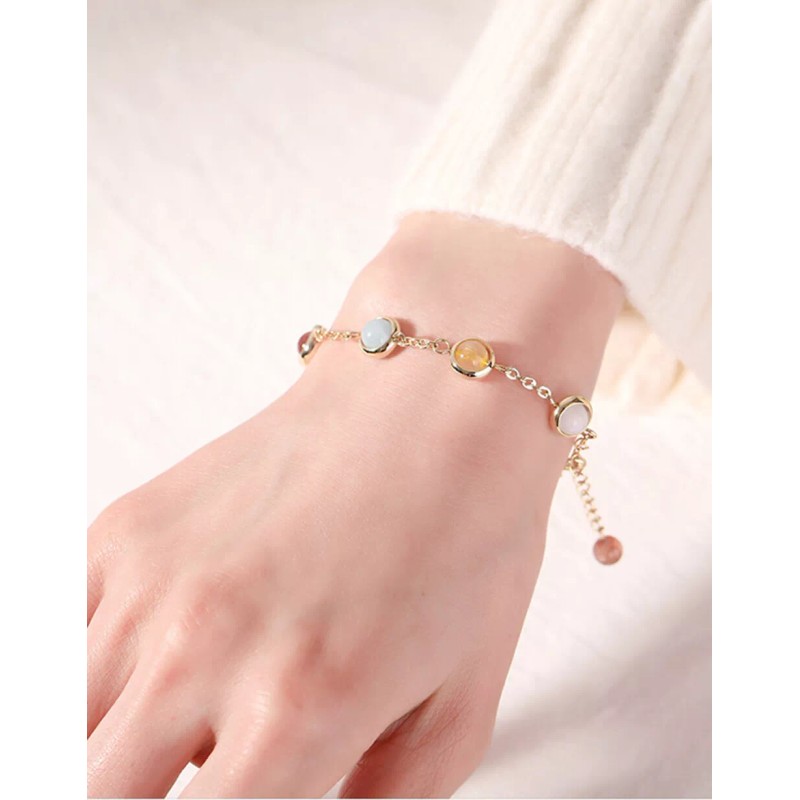 This charming bracelet boast a chic design that was inspired by nature and vintage designs. It features breathtakingly gorgeous semi-precious gemstone multi-color palette with colors that will make you dance with joy!