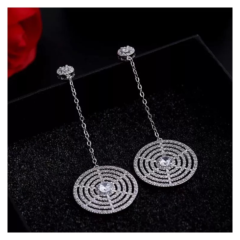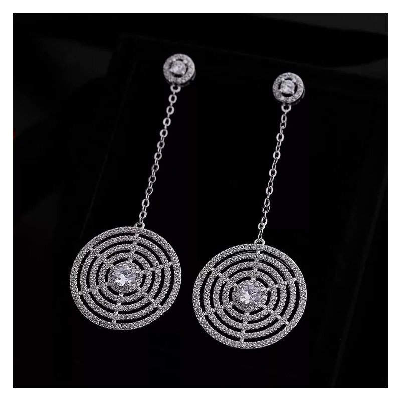 ZARD Cubic Zirconia Disc Drop Earrings in Fine Silver Plate