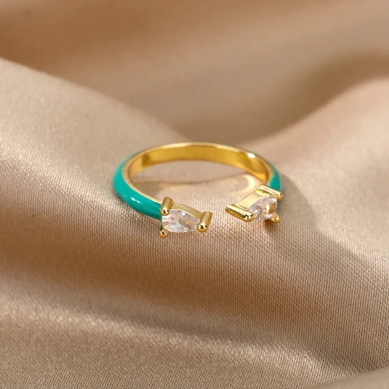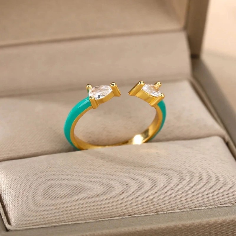 ZARD Turquoise Enamel Rings with Teardrop Shaped Cubic Zirconia Accents