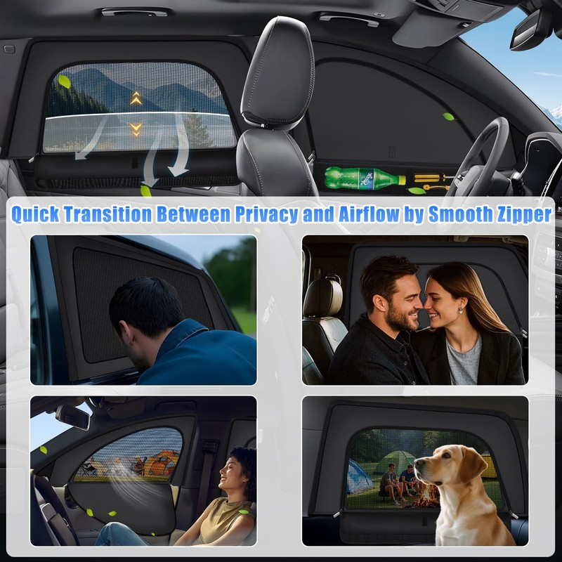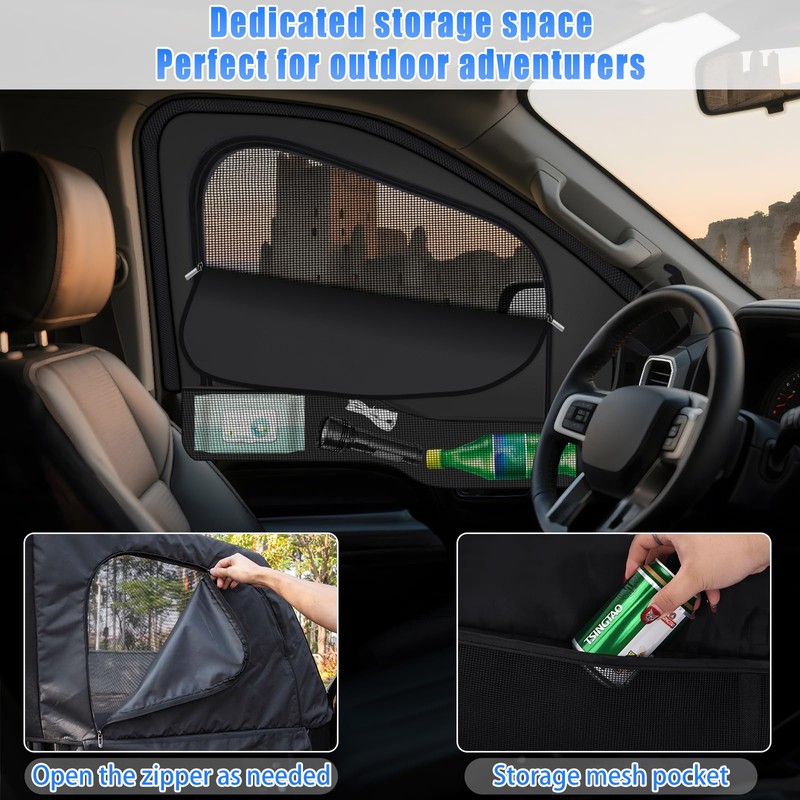 • UV Protection & Privacy: Featuring an outer mesh design and an inner Oxford cloth material with a zipper, this car sunshade for Ford F-150 effectively blocks 99% of harmful UV rays and glare when zipped up, helping to reduce interior temperature. Ford F-150 Car privacy window curtain creates a secure and private space for passengers. Whether you're camping, traveling, changing clothes, or breastfeeding, you can enjoy a quiet and undisturbed environment inside your vehicle