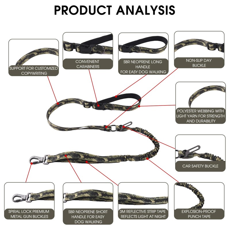 - 【Shock Absorber】 Enhanced Comfort and Safety The ZATRUA explosion-proof leash features built-in shock absorbers, offering elastic flexibility to reduce sudden pulling forces. This design improves safety and comfort during dog walking, training, and car rides