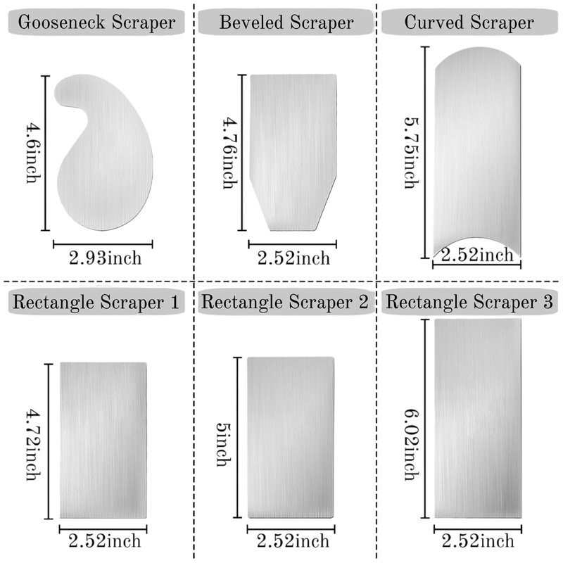 - Various Shapes to Choose: Designed in different shapes, these scrapers allow for every contour. Three rectangular and beveled scrapers handle flat surfaces, while curved and gooseneck shapes can tackle chairs, spindles, and boxes effortlessly.