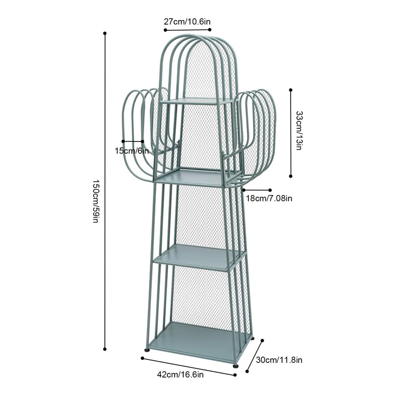ZAWAYINE 4 Tier Bookshelf Cactus Bookcase Freestanding Bookshelves Metal Storage Organizer Corner Display Rack Cabinet for Bedroom Living Room Office Bookshelf Display Shelf & Flower Rack (Green)