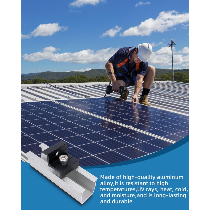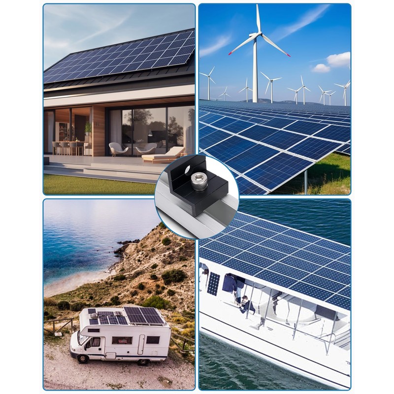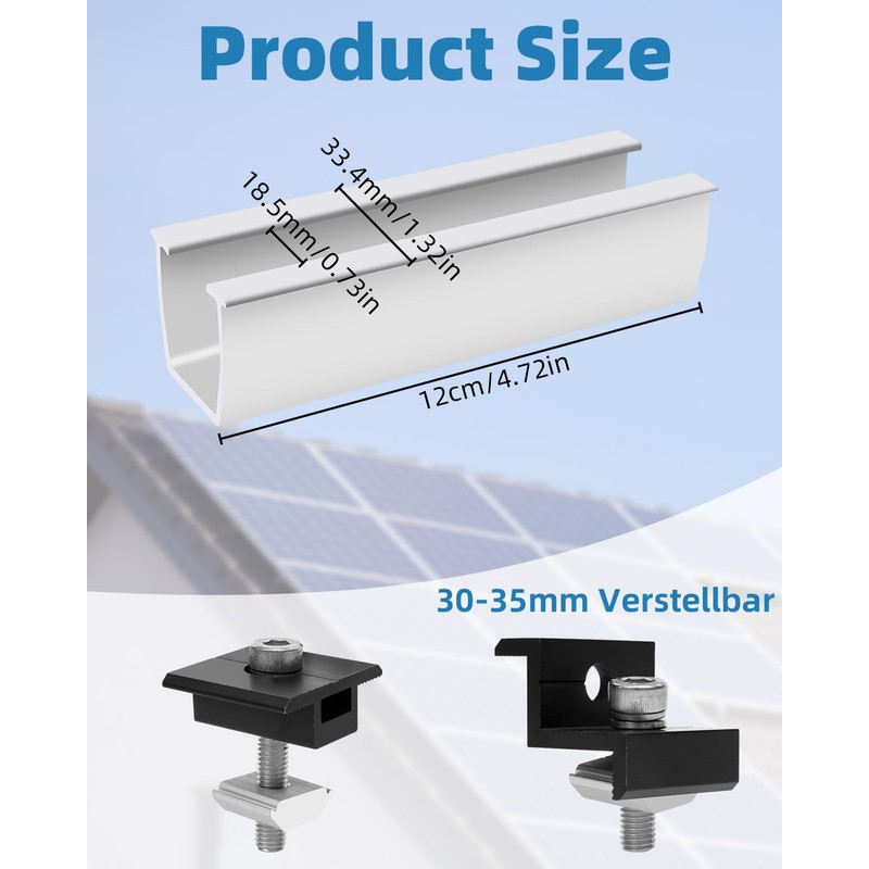 - Adjustable mounting bracket: the adjustable mounting bracket is compatible with a module thickness of 30-35 mm, you can adjust the settings as needed to ensure stability and performance. Suitable for sheet roofs, flat roofs and pitched roofs.