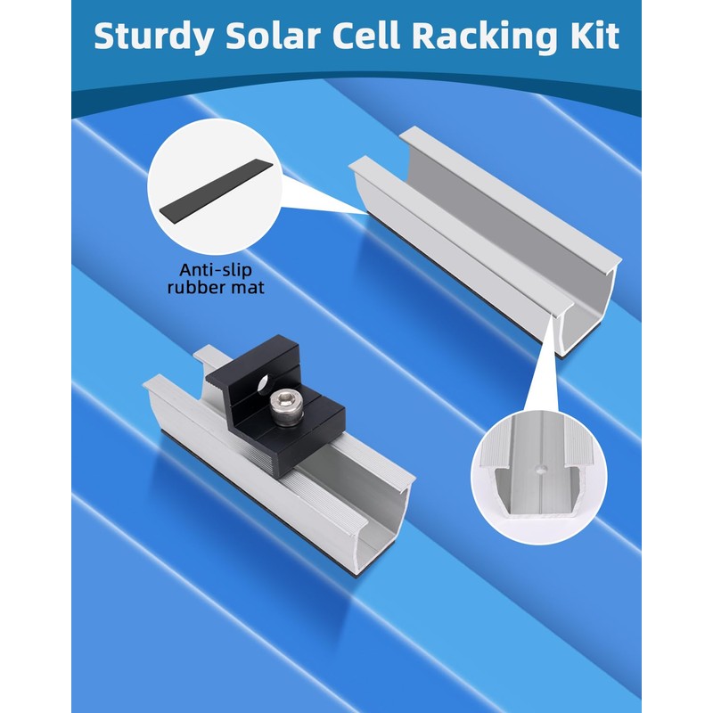 - High Quality Material The solar panel bracket kit is made of high quality aluminum alloy, durable, corrosion resistant, stable and resistant to UV, high temperature, low temperature and moisture corrosion.