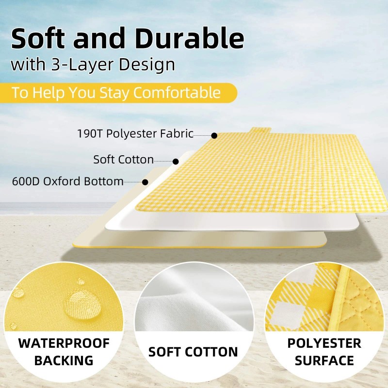 • Soft and Durable with 5-LayersMade of 5 layers, our picnic mat has thickened and sturdy fabric on the top, soft cotton for middle and durable fabric backing. Perfectly suitable for siting or lying on grass, beach, floor or any kindly of surface, giving you soft and comfortable feelings.