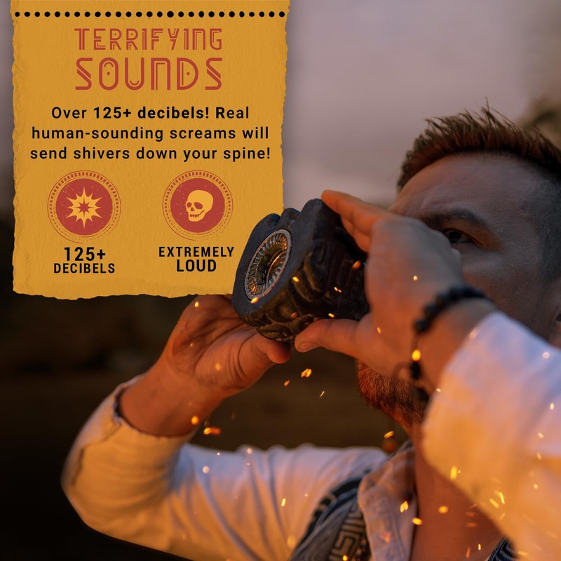 - ARTISTRY MEETS INNOVATION - Stonecast clay exterior honors Aztec culture. Precision engineered interior scream chamber produces consistently loud and bone-chilling shrieks.