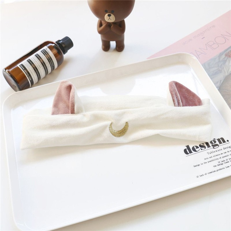 ZCYYYS Moon Cat Ear Makeup Hair Band Cosmetic Shower Elastic Hair Band Headband for Women Girls Wash Face Headbands Head Wrap TSFD51 (White)