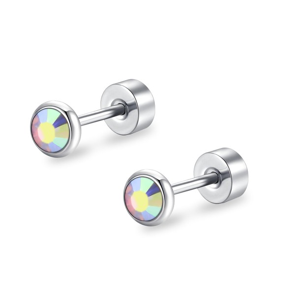 ZDE Titanium Flatback Earrings for Women Crystal Stud Earrings Flat Back Women Earrings Hypoallergenic Cartilage Flatback Earring Tragus Helix Tragus Conch Piercing 3mm-5mm, 5MM, Titanium, Rhinestone